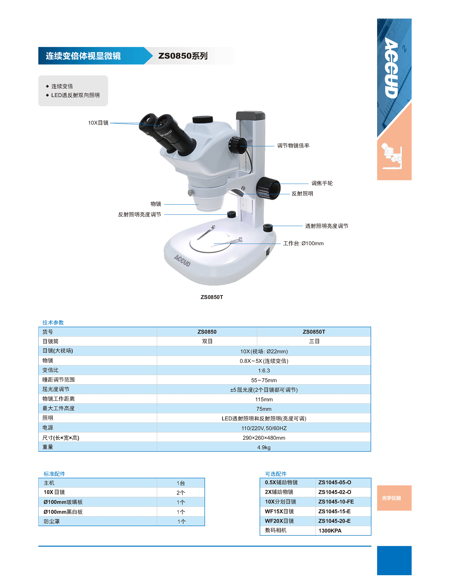 简短描述: ♦ 连续变倍 ♦ LED透反射双向照明