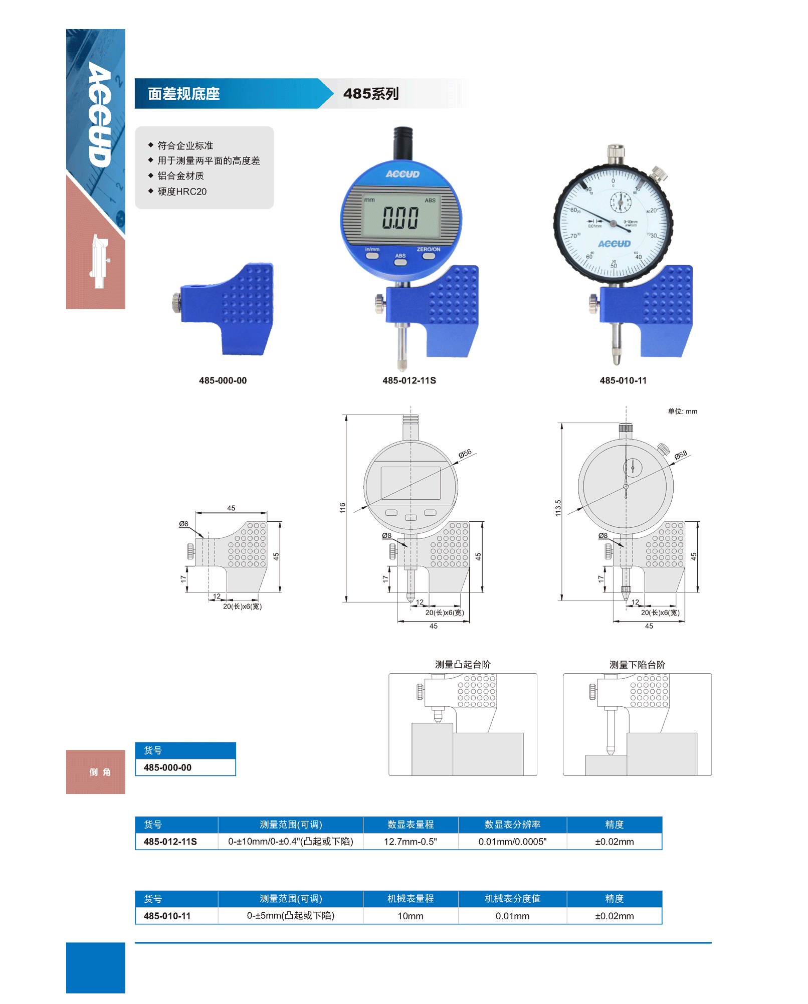 简短描述: ♦ 符合企业标准 ♦ 用于测量两平面的高度差 ♦ 铝合金材质 ♦ 硬度 HRC20