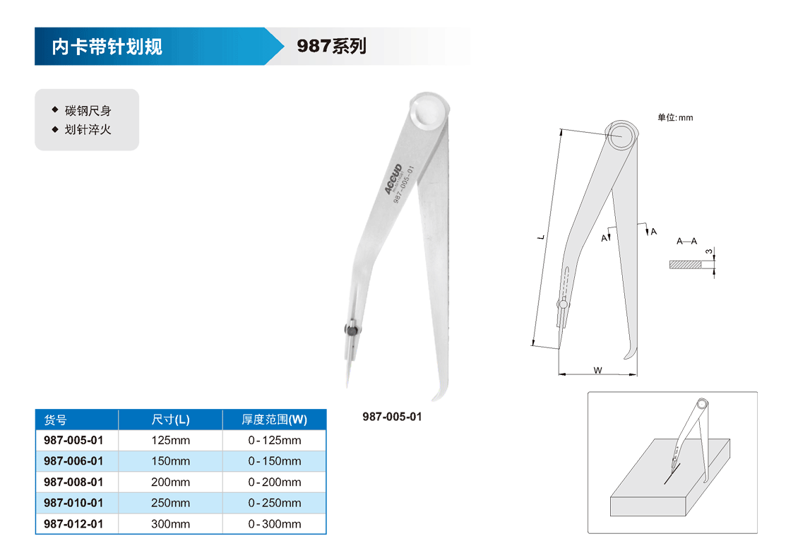 简短描述: ♦ 碳钢尺身 ♦ 划针淬火