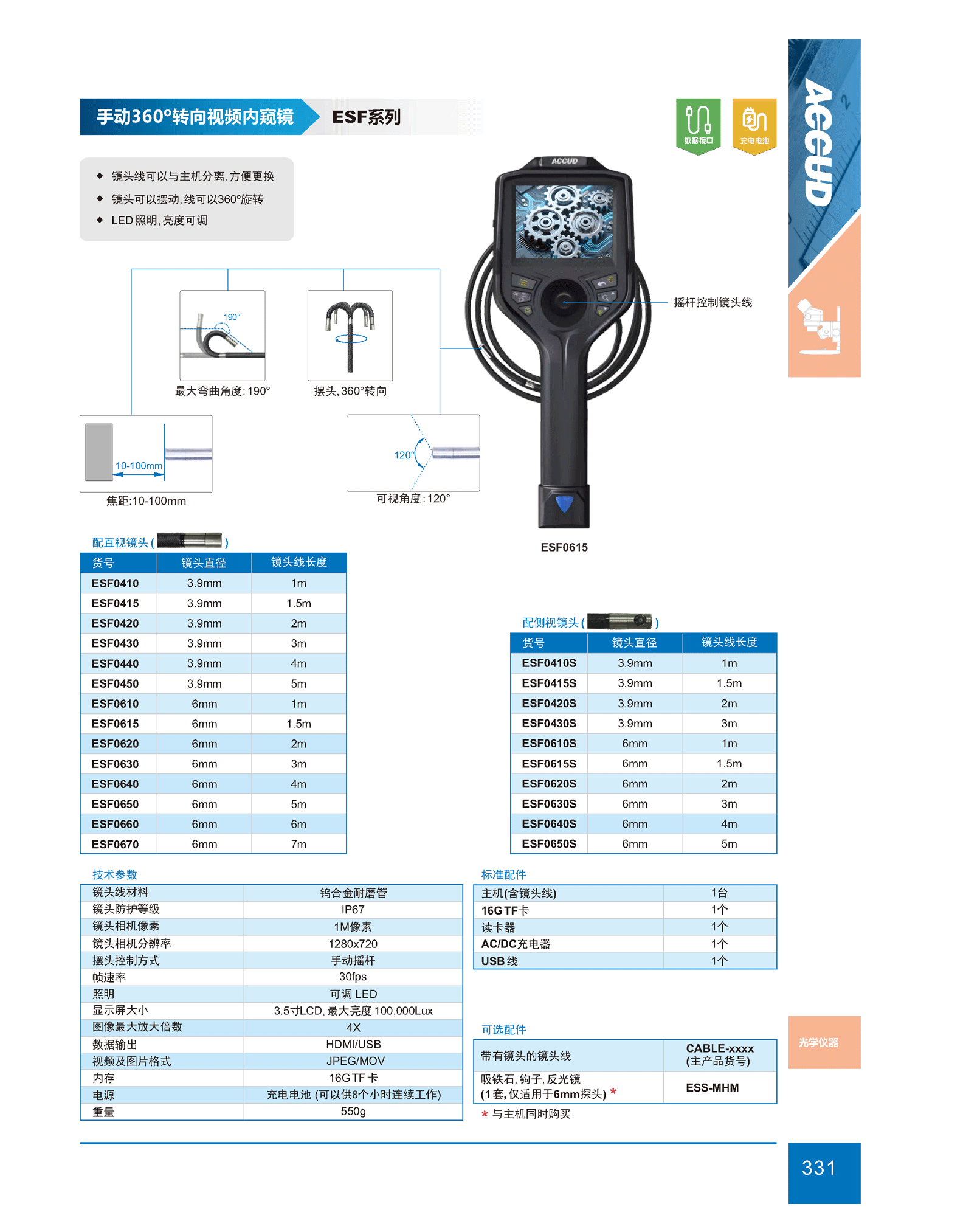 简短描述: ♦ 镜头线可以与主机分离, 方便更换 ♦ 镜头可以摆动, 线可以360º旋转 ♦ LED 照明, 亮度可调