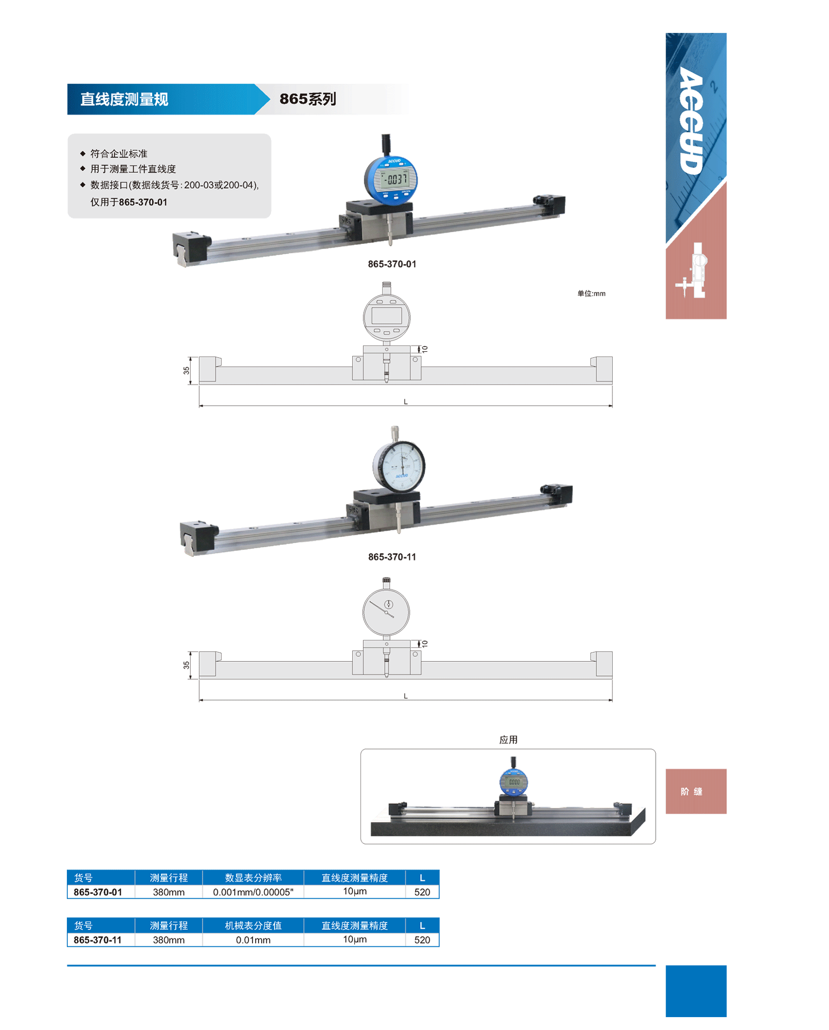 简短描述: ♦ 符合企业标准 ♦ 用于测量工件直线度 ♦ 数据接口(数据线货号:200-03或200-04), 仅用于865-370-01