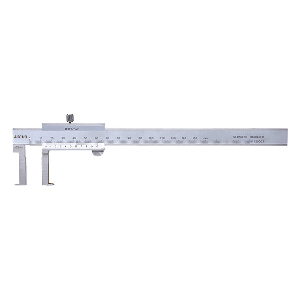 简短描述: ♦ 用于测量内凹槽宽度等 ♦ 分度值: 0.02mm ♦ 不锈钢尺身 ♦ 镀暗铬刻度面