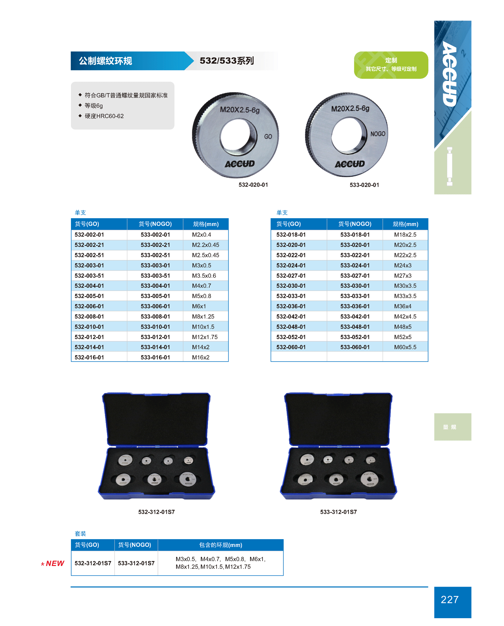 简短描述: ♦ 符合GB/T普通螺纹量规国家标准 ♦ 等级6g ♦ 硬度HRC60-62